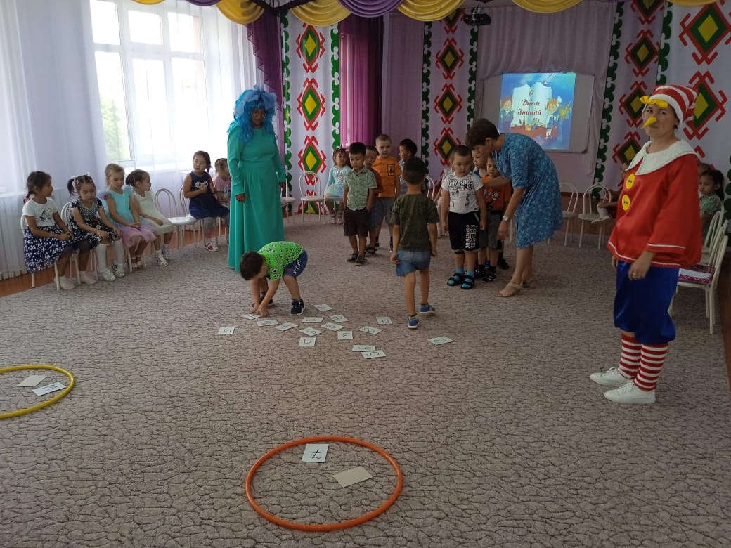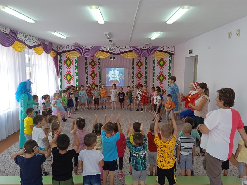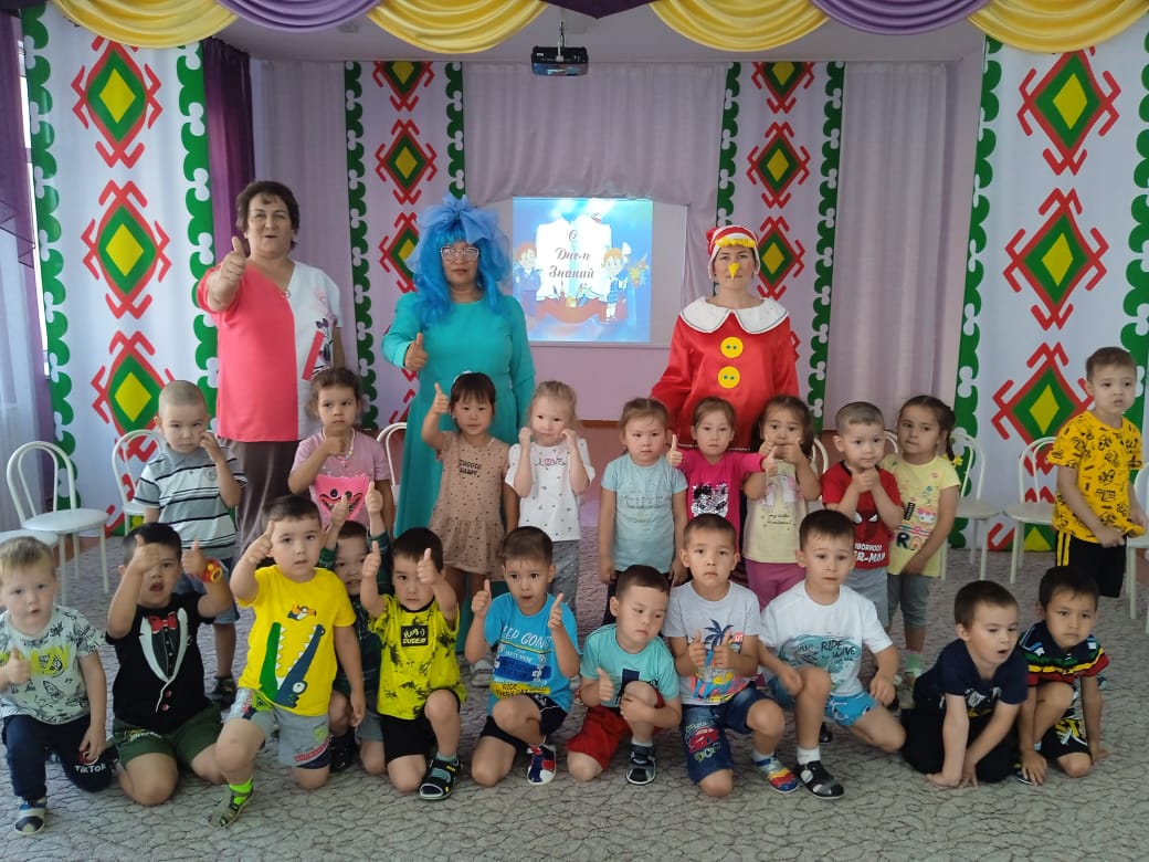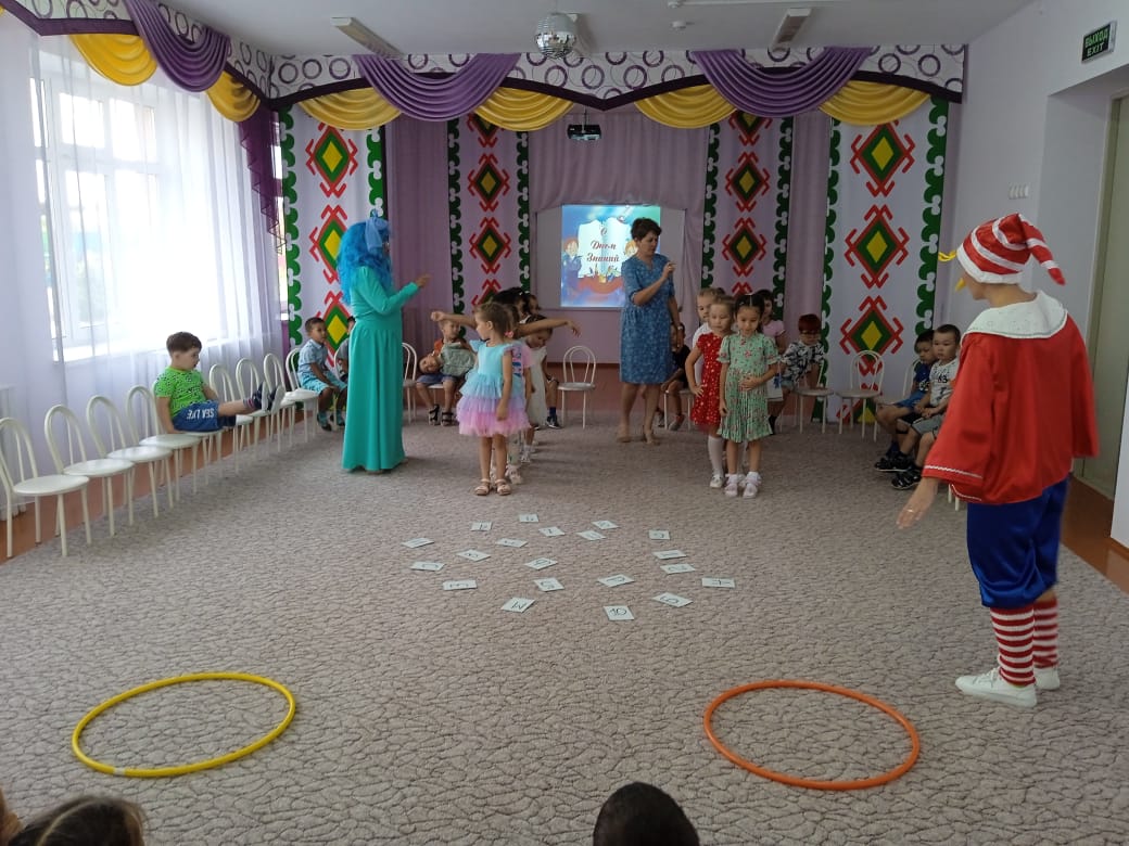 Сегодня начало учебного года и у нас прошел праздник, посвященный ко Дню знаний. В гости к девочкам и мальчикам пришли Мальвина и Буратино. Буратино не знал буквы, ребятишки помогали ему. Танцевали, играли хороший праздник получился! Детям понравилось.