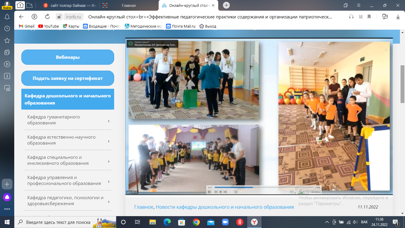 Выступление Мухаметкуловой З.Р. на онлайн - крулом столе института развития образования РБ
