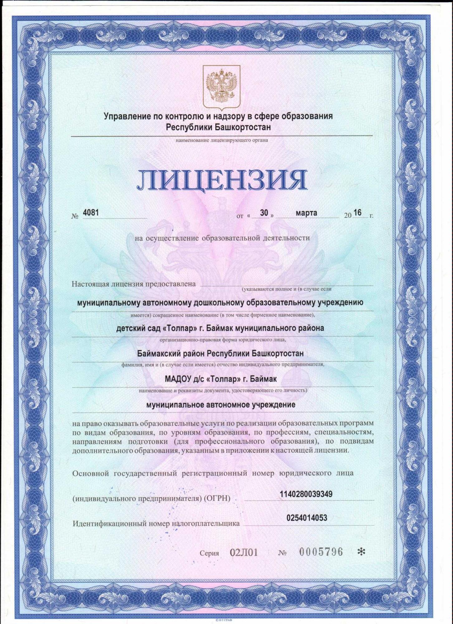 Информация о лицензии на осуществление образовательной деятельности